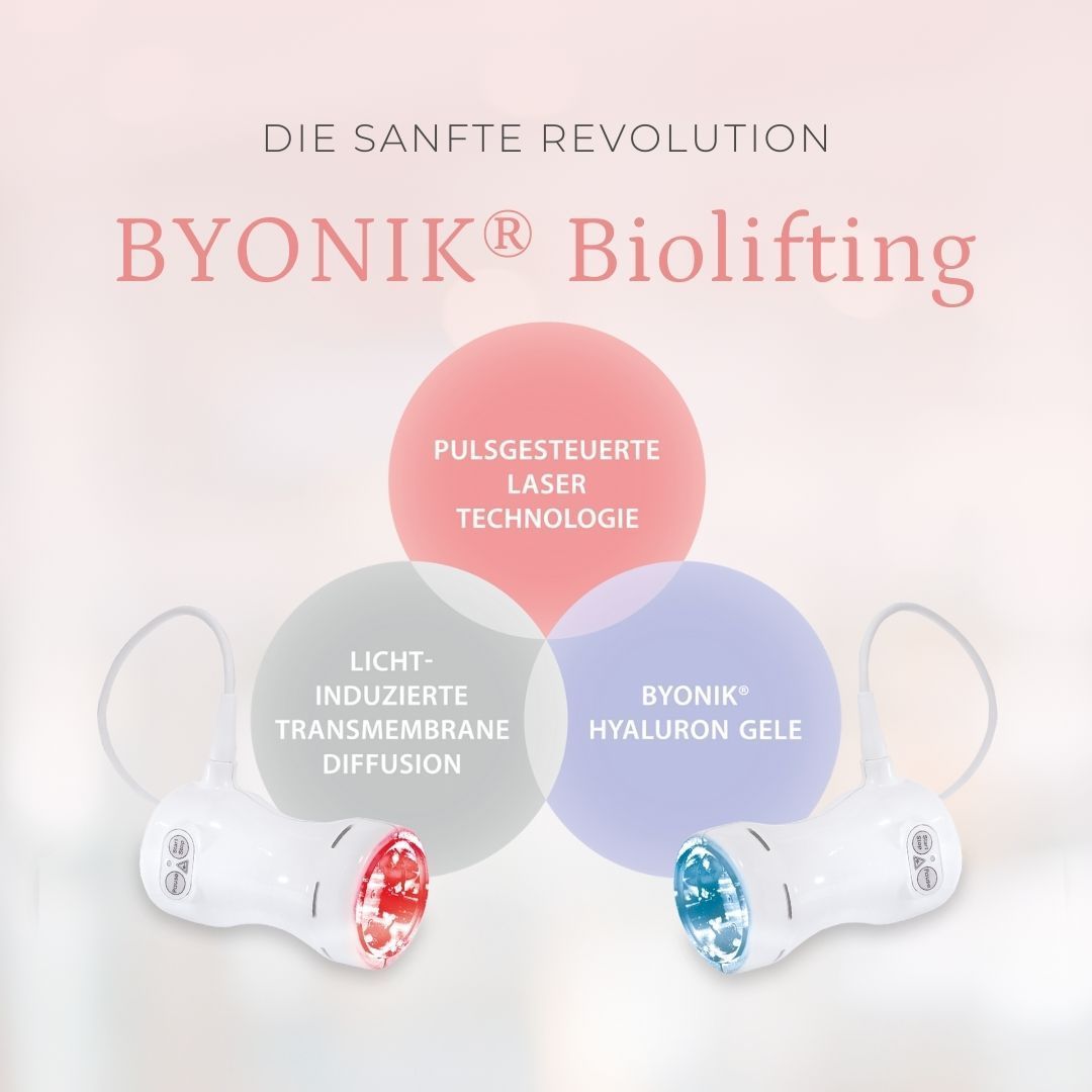 Mit seiner einzigartig sanften, patentierten Lasermethose begeistert BYONIK an der Schnittstelle von professioneller Kosmetik und medizinischem High-Tech-Verfahren. Was sich anfühlt wie Wellness, ist ein effektives Bio-Lifting mit sichtbaren Ergebnissen. Die Wirksamkeit der BYONIK Methode ist durch Studien wissenschaftlich belegt (Quelle: Byonik beauty lumis München)